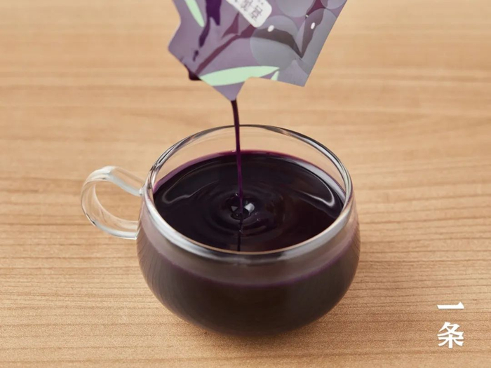 打开后一股浓厚的黑枸杞纯香扑鼻而来,颜色呈深紫色,带着微微酸感,和黑枸杞鲜果的味道差不多。