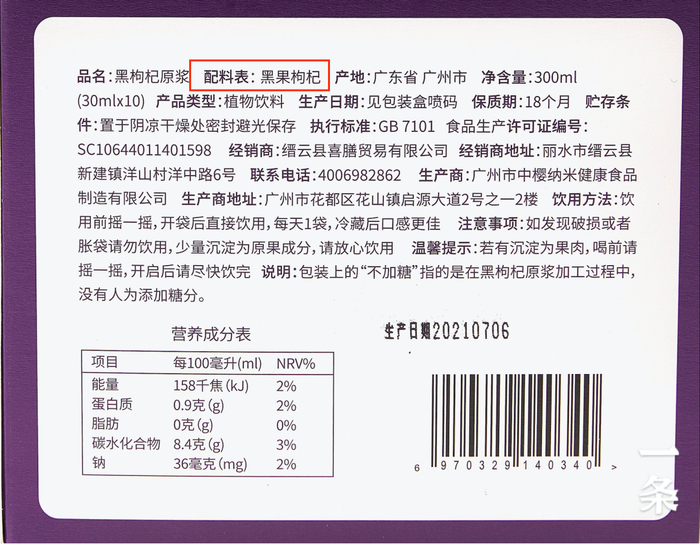 配料也是干干净净,只有黑果枸杞,没有额外添加物,天然健康,喝着让人放心。