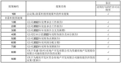 (二)上述提案1.00-7.00的具体内容详见2023年4月29日在《中国证券报》、《证券时报》、《证券日报》、《上海证券报》及巨潮资讯网(http://www.cninfo.com.cn)发布的《荣盛房地产发展股份有限公司第七届董事会第二十五次会议决议公告》、《荣盛房地产发展股份有限公司第七届监事会第十三次会议决议公告》、《荣盛房地产发展股份有限公司2022年年度报告全文及摘要》。