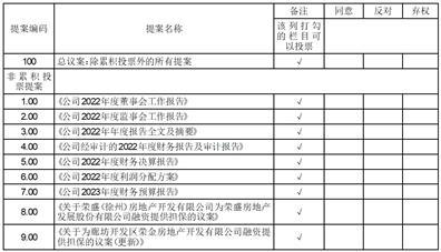 上述提案9.00的具体内容详见2023年5月17日在《中国证券报》、《证券时报》、《证券日报》、《上海证券报》及巨潮资讯网(http://www.cninfo.com.cn)发布的《荣盛房地产发展股份有限公司第七届董事会第二十六次会议决议公告》、《荣盛房地产发展股份有限公司对外担保公告》。