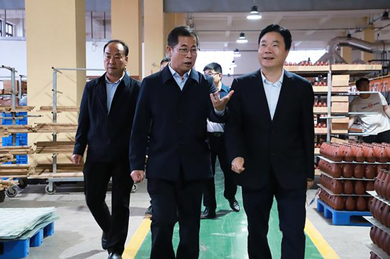 顾祥悦一行先后观摩了非公党建文化展馆、仰韶世界酒史馆、万吨洞藏酒窖、酿造车间、智能化包装车间,以及正在建设中的3万吨智能化酿造车间1号车间,从非公党建、品牌建设、酿储工艺、智能化改造、质量管控以及酒文旅融合方面,对近年来仰韶酒业“科技仰韶、品质仰韶、文化仰韶、生态仰韶、公益仰韶、诚信仰韶、数字仰韶”七大战略的推进情况和丰硕成果进行全方位了解。