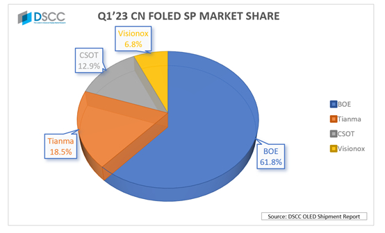 DSCC数据显示,TCL华星第一季度柔性OLED出货量约为585万片。从当前下游的客户品牌构成来看,TCL华星出货较为依赖战略客户小米。