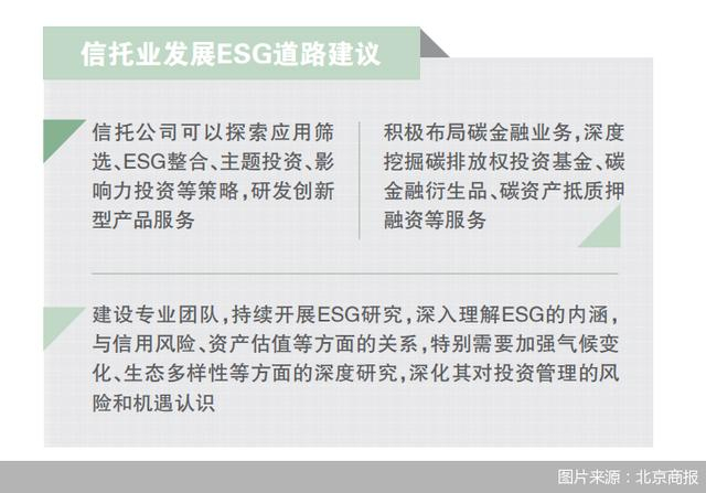 对信托公司来说,未来,如何在业务中引入、贯彻ESG理念是将要重点布局的方向。