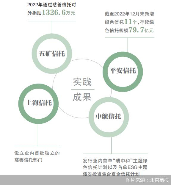 在慈善信托这条“赛道”上,信托公司可谓是“多点开花”。例如:慈善信托方面,兴业信托推动与兴业证券“双兴联动”,据悉,“兴证兴未来”慈善信托项目已于2023年初落地,创新采用“本金投资+收益慈善”模式,是信托“新三分类”以来首笔募集外部善款的公益慈善信托项目。平安信托与平安普惠、平安租赁成功落地国内首只碳中和主题绿色金融慈善信托;上海信托设立业内首批公益信托、设立业内首批独立的慈善信托部门、推出“上信上善”公益品牌。
