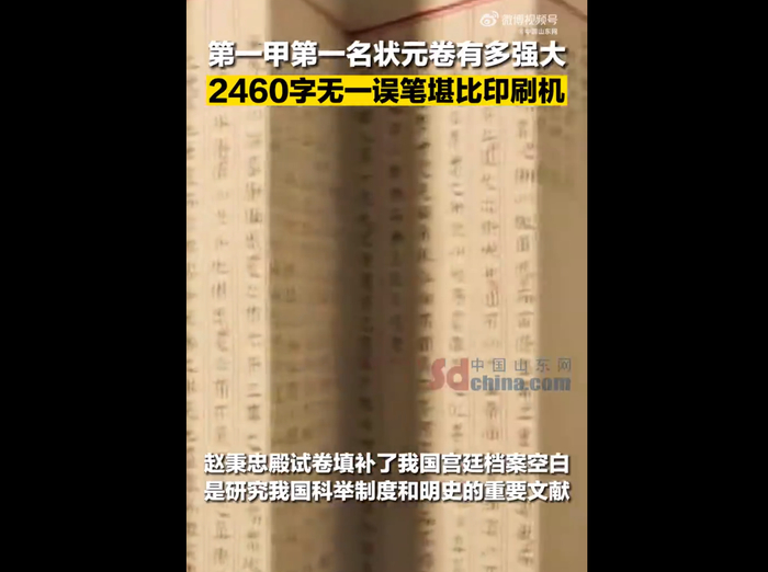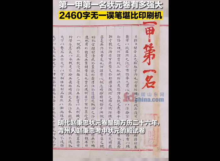 (原标题:第一甲第一名状元卷有多强大 状元卷2460字无一误笔真不是传说