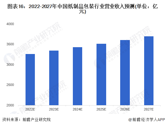 前瞻分析认为,2022-2027年,行业规模以上企业营业收入经过调整后有望重回低速增长轨道,到2027年,国内纸制品包装规模以上企业市场规模预计有望达3700亿元。