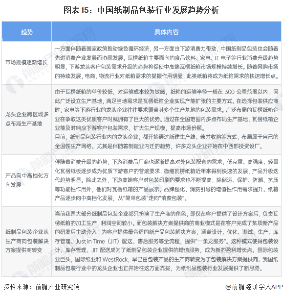 更多本行业研究分析详见前瞻产业研究院《中国纸制品包装行业市场前瞻与投资战略规划分析报告》,同时前瞻产业研究院还提供产业大数据、产业研究、产业规划、园区规划、产业招商、产业图谱、产业链咨询、技术咨询、IPO募投可研、IPO业务与技术撰写、IPO工作底稿咨询等解决方案。