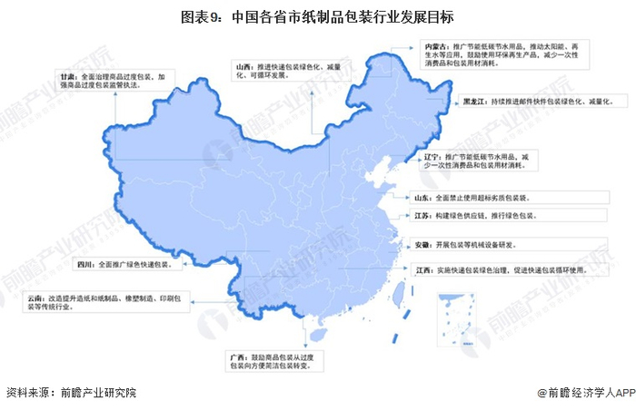从全国各省市的纸制品包装行业发展布局来看,各省市的对纸制品包装行业的发展有明确文件指示,具体包括扩大轻工、纺织等优质产品供给,加快化工、造纸等重点行业企业改造升级,完善绿色包装制造体系。