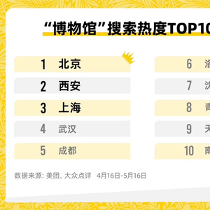 ▲北京、西安、上海成为“博物馆”搜索量排名前三的城市