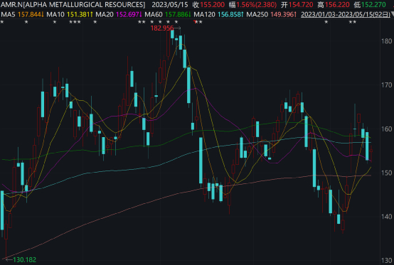 比如Alpha Metallurgical Resources在今年3月一度涨至182.96美元/股的位置,但是随后股价却出现大幅下跌,然而最近也有反弹,最新报收155.20美元/股。