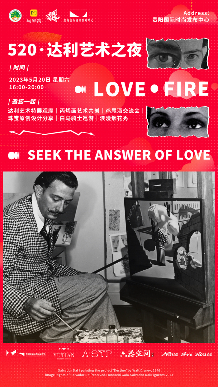 基于上述洞察,马蜂窝“周末请上车”也特别联合达利艺术特展,于5月20日当天在贵阳发起“love·Fire达利艺术之夜”活动,借助更多丰富新鲜的新玩法,破除艺术与城市文化的藩篱,重塑情感与艺术的链接。