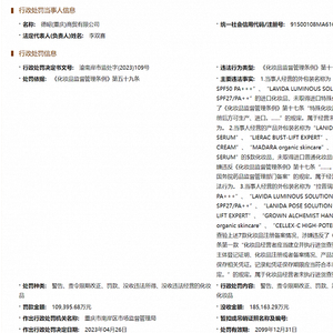 值得一提的是,罚单并未写明执法机关启动调查的时间,也未点明该公司从何时开始销售这7款未经注册备案的化妆品,以及各个产品的具体销售额。有业内人士指出,若按照企业成立时间算起,平均每款产品年均销售额约1.3亿元,才能达到18.5亿元。