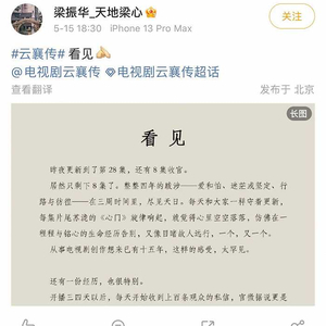 总体来说,《云襄传》有稳固的观众群,但缺乏路人大盘,没有更广泛出圈。有不错的口碑,但在社交网站短视频缺乏讨论声量,处于一个尴尬位置。直到梁老师发深情小作文时,还有观众丢下一句“营销拉胯”,可见剧集错过了多少营销的黄金节点!
