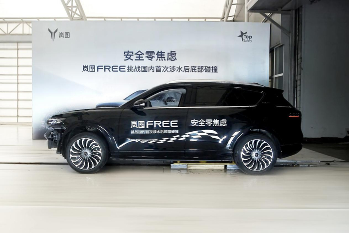 在岚图汽车的营销案例中,比较令人印象深刻的当属其“全球首个电动车涉水后底部碰撞公开测试”。这意在表现岚图FREE在涉水后,再遇到车底部碰撞的情况下,仍然可以保证电池安全。