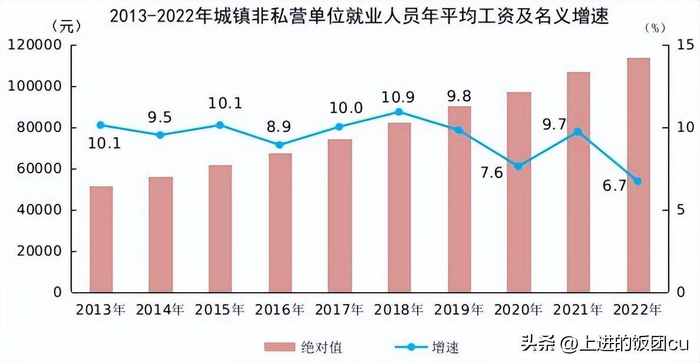 全国城镇非私营单位就业人员年平均工资为114029元,名义增长6.7%,增速较2021年下降3%。扣除价格因素,实际增长4.6%。