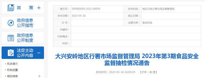 黑龙江省大兴安岭地区行署市场监管局发布2023年第3期食品安全监督抽检情况