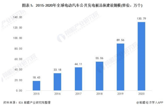 根据IEA公布数据显示,2015-2020年,全球电动汽车公共充电桩建设规模持续上升,由2015年的18.43万个增长至2020年的130.79万个,年均复合增长率高达47.98%。