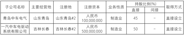 注2:本公司认为,虽然其持股比例仅为50%,本公司也控制了一汽中车电驱动系统有限公司(以下简称“一汽中车” ),主要原因是:根据一汽中车的公司章程,股东会会议由股东按照出资比例行使表决权,股东会决议须经全体股东一致同意通过;董事会由 5 名董事组成,本公司委派 3 名董事,一汽股权委派 2 名董事,董事会决议事项分为普通决议事项和特别决议事项,普通决议事项经半数以上董事同意方可通过,特别决议事项涉及一汽中车运营的重要决策,须经三分之二以上董事同意方可通过;对于一汽中车在股东会或董事会上未能获得通过的事项,经双方约定的程序进行协商后仍无法达成一致的,最终以本公司处理意见为准,因此本公司认为对一汽中车具有控制权。