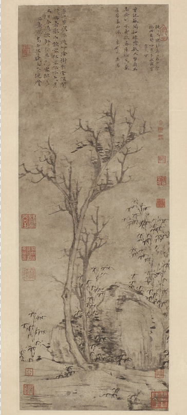 无锡 元倪瓒纸本墨笔苔痕树影图轴