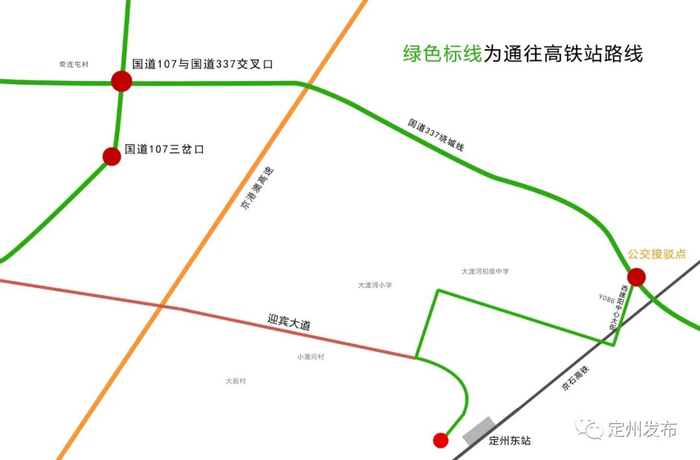 为配合做好交通保障工作,方便广大乘客出行,公交公司在高铁站北部绕城G337与中心大街(Y086)路口和定州火车站出租车停车场临时(5:00—12:00)设置乘客接送车辆,请广大乘客提前安排好出行计划,给您带来的不便敬请谅解。