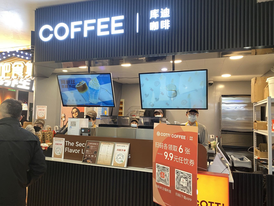 例如,北京朝阳区常营地铁站附近的一条街上,瑞幸和库迪中间只隔了一个店面。在上海徐家汇光启城,瑞幸咖啡在B1层,库迪咖啡在B2层,上下两层弥漫着无声的硝烟。
