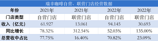 根据年报,截至2022年底,瑞幸的联营门店共有2562家,占比31.2%,年收入为30.69亿元,对总营收的贡献达到23%。