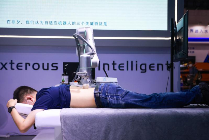 非夕科技自适应机器人按摩理疗(海沙尔 摄)