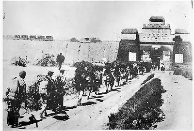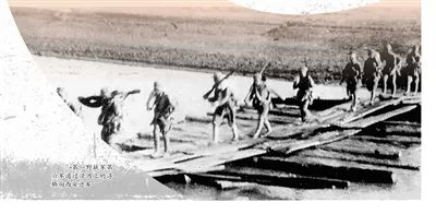第一野战军第六军通过泾河上的浮桥向西安进军