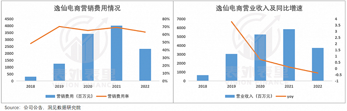 如完美日记、半亩花田等依赖抖音等密集流量曝光,红极一时的品牌,无法持续加大投入后被迫裸泳。以完美日记为例,经历了“2018-2020年销售额翻近8倍,到2021Q3-2022Q3营收同比五连跌”的大跳水。