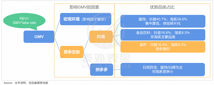 而拆分阿里的GMV结构可以看到,美妆护肤和服饰几乎占领了半壁江山,是妥妥的“现金奶牛”。而这也是最受抖快电商冲击的领域——可以看到,服饰、美护领跑抖音品类销量贡献大头。