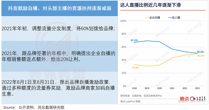 抖音方面则如上文所说,致力于平衡流量分配,扶持自播。