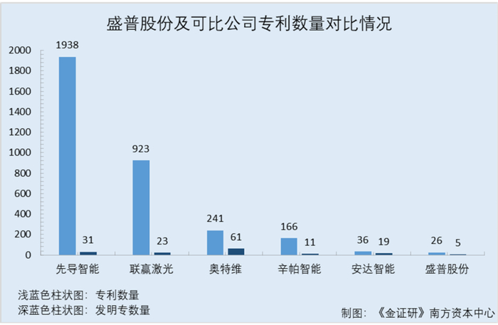同时,盛普股份的专利数量在可比公司中亦不占优。