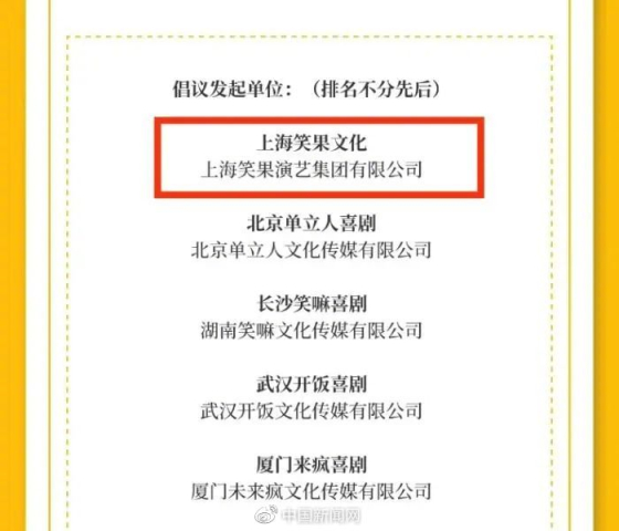 值得一提的是,去年12月,笑果文化和其他从事脱口秀演出的十余家企业联合发起倡议,牢记文化担当与职责使命、注重原创保护、规范演出经营行为、畅通人才培养通道等为脱口秀行业营造健康、持续、稳定的发展环境。今年3月,笑果文化签署《新时代网络视听行业爱国为民 崇德尚艺承诺书》。承诺书的内容包括:“心怀敬畏,严守底线,不碰红线,追求高线。”
