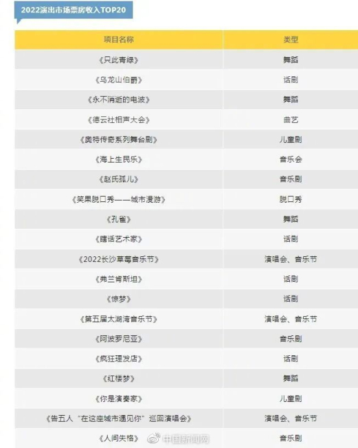 中国演出行业协会发布的《2022年中国演出市场年度报告》显示,全年曲艺类演出票房收入6.15亿元,平均票价143元。其中,相声和脱口秀演出票房收入总计占比95%以上。2022年在专业剧场举办的大中型脱口秀演出场次与上年相比略有上升。其中《笑果脱口秀——城市漫游》,位居2022演出市场票房收入TOP20,也是其中唯一的脱口秀项目。