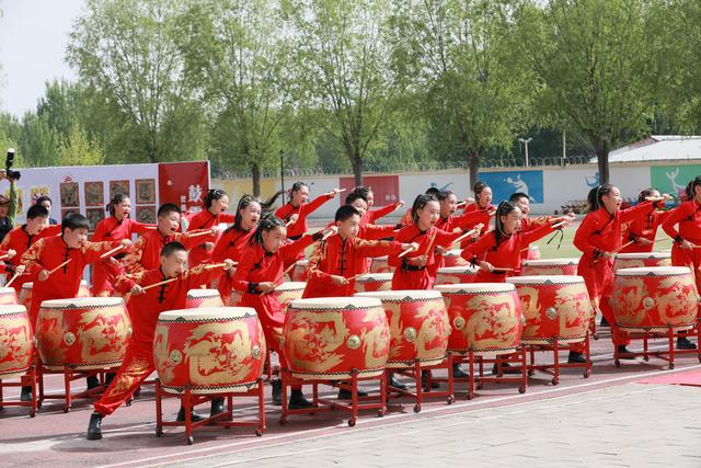 门楼中心小学展示鼓文化。