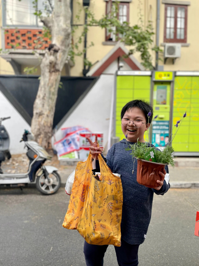 此时,愚园路上的CREATER创邑发挥了显著作用,他们提前联系好了愚园路第一小学、愚园路养老院等单位,让孩子们画画,为老人们送盆栽,及时沟通沿街商铺的需求,尽可能地让在地居民都充分参与到这场趣味活动之中。