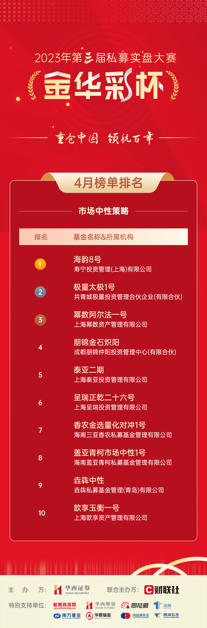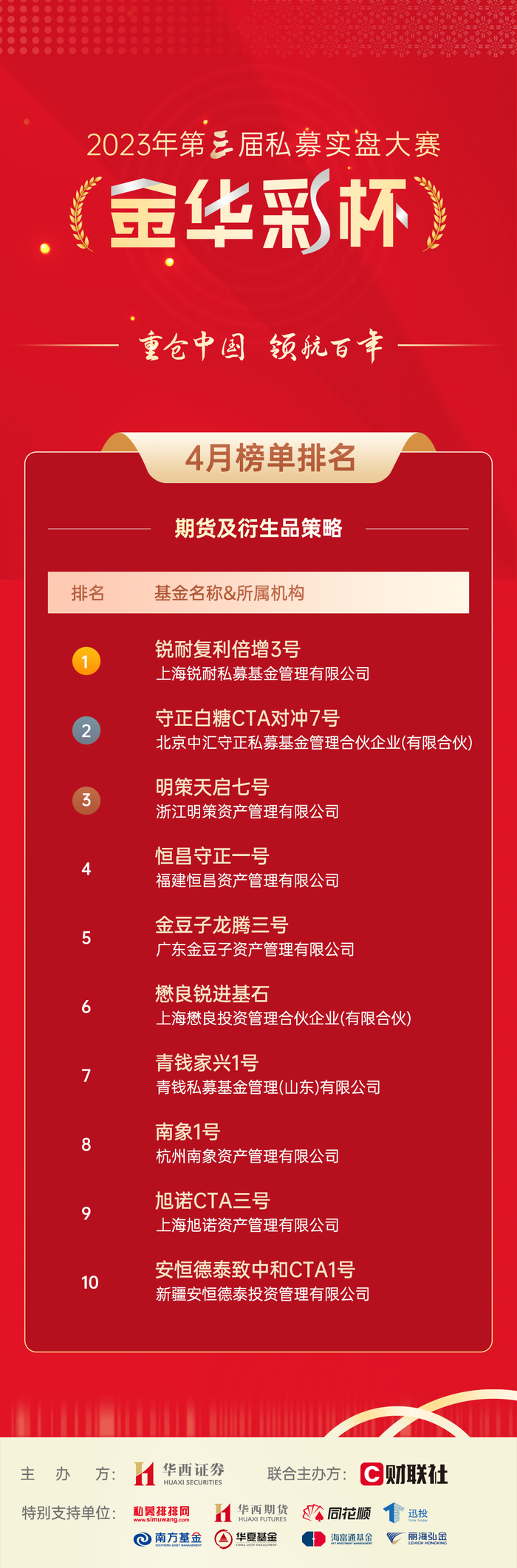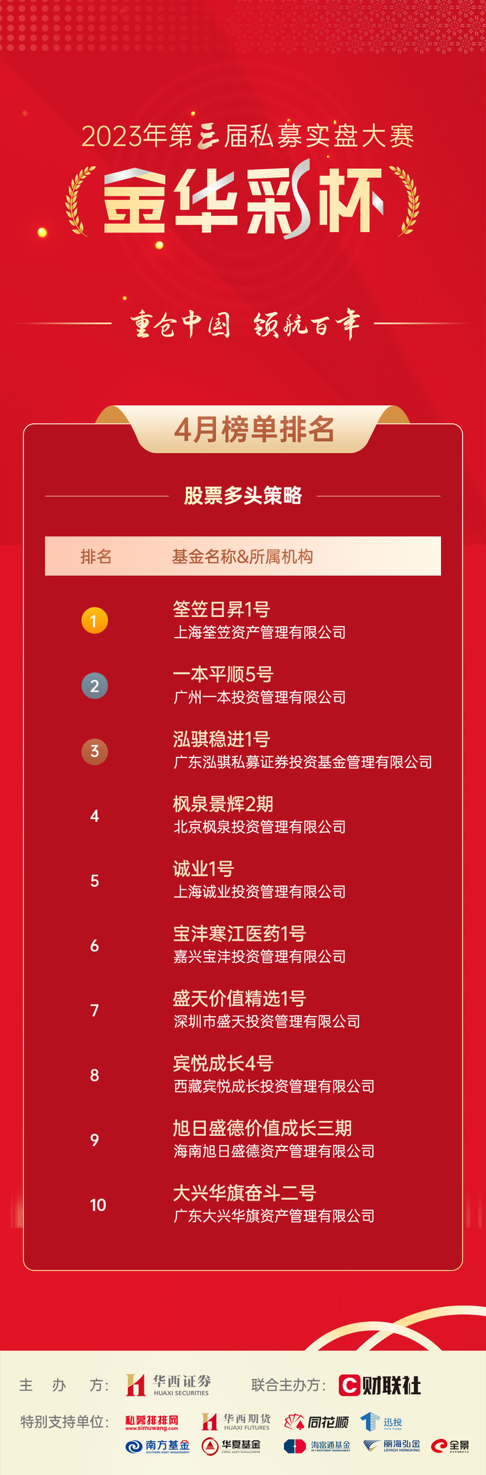 五大策略谁主沉浮?华西证券第三届“金华彩杯”4月榜单揭晓,“小而精”新锐选手表现不俗