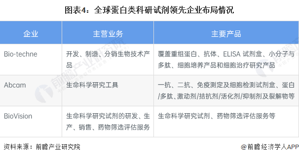 全球蛋白类科研试剂市场高度分散,主要因为与其他生命科学服务相比,蛋白表达及蛋白组学分析服务需求相对较低。随着合成生物学发展,其于全球研究性蛋白及抗体相关服务及产品市场的需求有望持续增长。