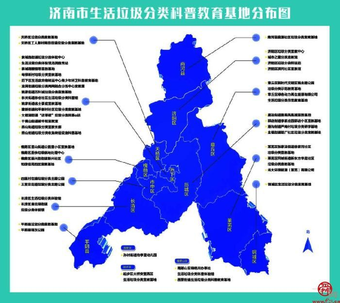 近年来,济南市坚持以人民为中心的发展理念,以钉钉子的精神,扎实推动垃圾分类各项工作,全市垃圾分类投放、分类收集、分类运输和分类处理系统得到进一步健全,垃圾分类党建引领体系、政策法规体系、宣教动员体系和长效管理体系不断完善,整体工作取得积极进展。市城管局党组成员、副局长秦国芬表示,本次公布的全市44个生活垃圾分类科普教育基地地图,就是市城管局提高全市垃圾分类科普服务能力和覆盖范围的一次摸索与实践,旨在让更多市民了解身边的科普基地,进而打卡参观,助力垃圾分类家喻户晓,人人参与。