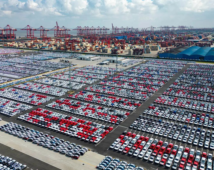 2022年10月31日,一批汽车在江苏省苏州市太仓港码头准备出口到海外市场。