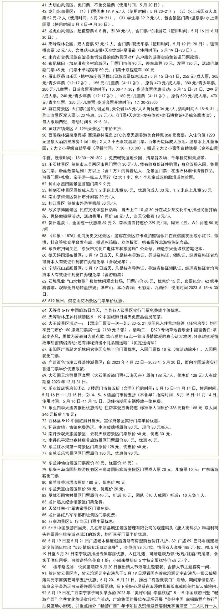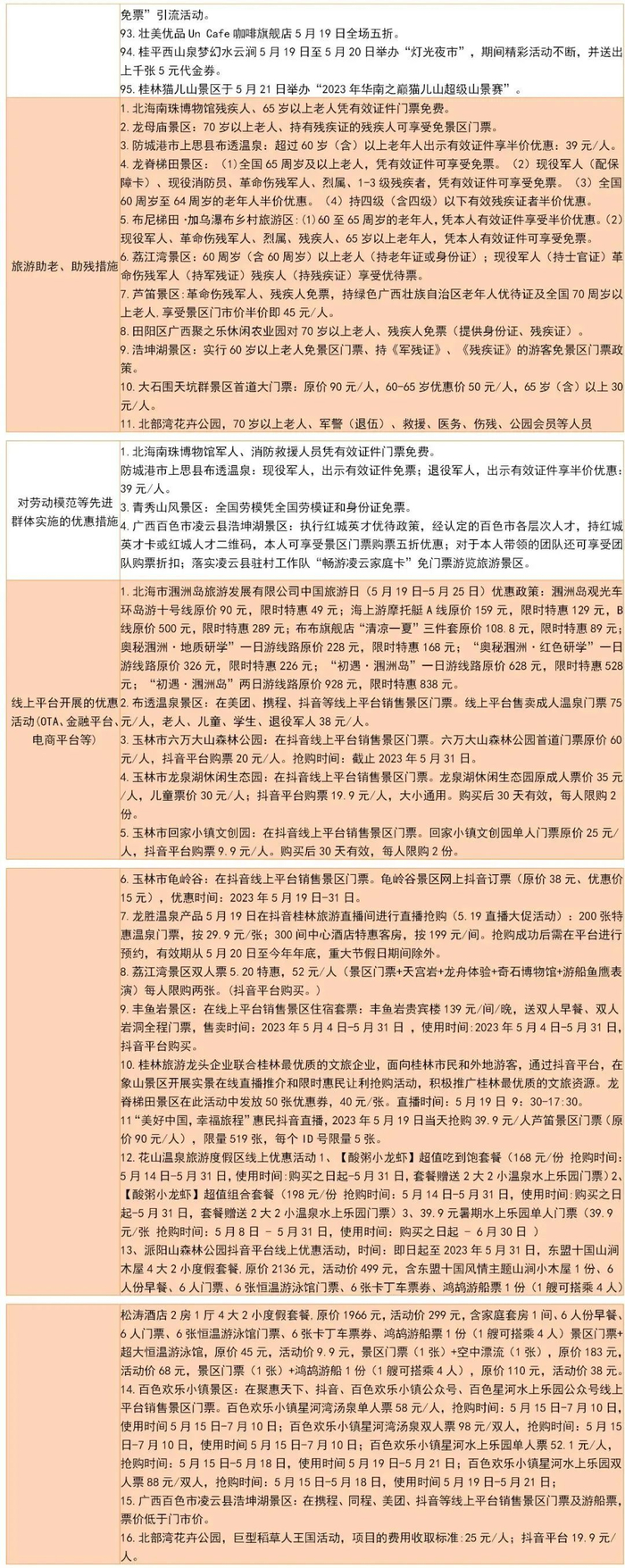 5月18日,记者从广西文化和旅游厅了解到,“5·19中国旅游日”要来啦,一大波优惠也来了。广西各市推出200余项惠民活动、100余项特色活动。部分景区推出的免门票、半价等优惠措施。