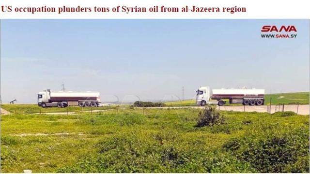 ·4月11日,美国在叙利亚的非法驻军使用32辆油罐车和6辆军用装甲车,将当地的石油资源经过非法过境点运往其在伊拉克境内的军事基地。