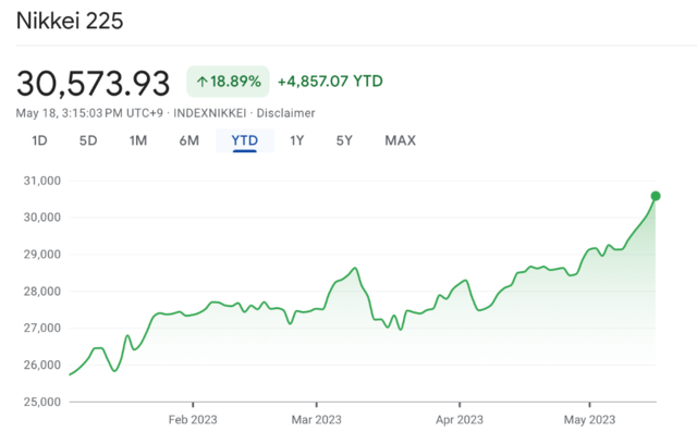 欧美银行业危机余波未平叠加美国债务上限僵局,也使众多海外投资者将视线转向了亚洲股市,而日股成了绝佳的避险之地。