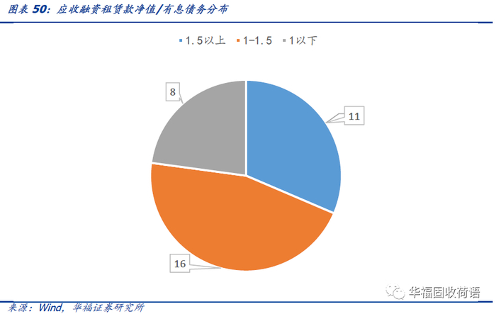 大部分金租企业的应收融资租赁款净值/有息债务在1倍以上。应收融资租赁款净值与有息债务的比值越大,金租公司偿债能力越强。在样本的35家公司中,27家公司应收融资租赁款净值/有息债务超过1倍,对负债端的有息债务覆盖能力较强。但少数公司如昆仑金租、湖北金租应收融资租赁款净值/有息债务不足0.1。