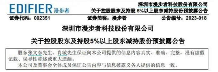 漫步者:先发减持公告,后发沾AI概念公告,两大创始人要“割韭菜”?
