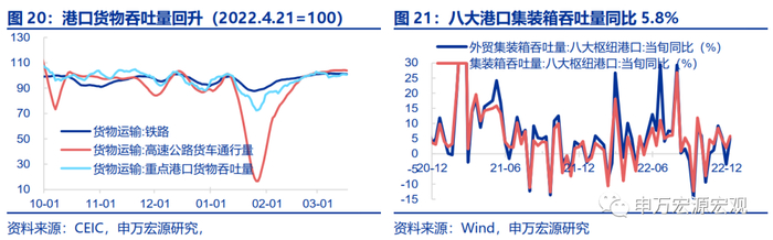7)出口:港口物流效率有所改善。截至3月17日,交运部重点港口货物吞吐量较上周回升0.8%,高速公路货车通行量与铁路货运量较上周分别回落0.2%、0.5%。
