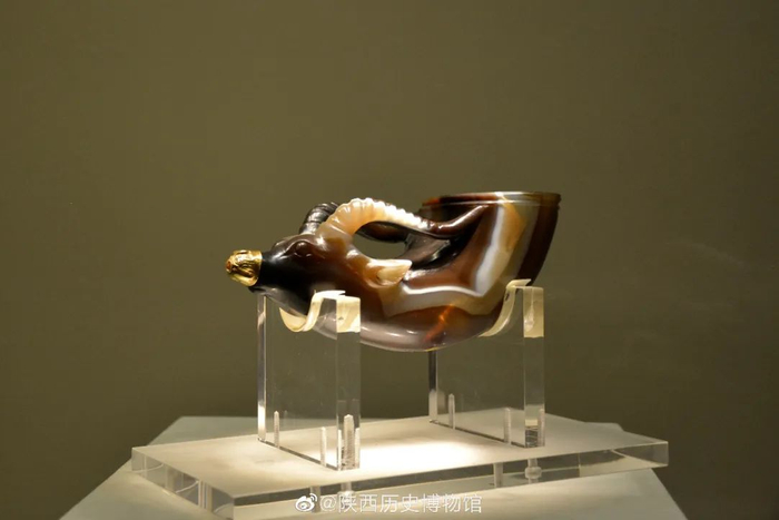 杯的造型,与起源于古希腊的酒具“来通”相似,“来通”曾广泛流行于中亚、西亚地区。小小玛瑙杯目睹了唐代丝路繁华,也倾倒出了唐人开放包容的胸襟气魄。
