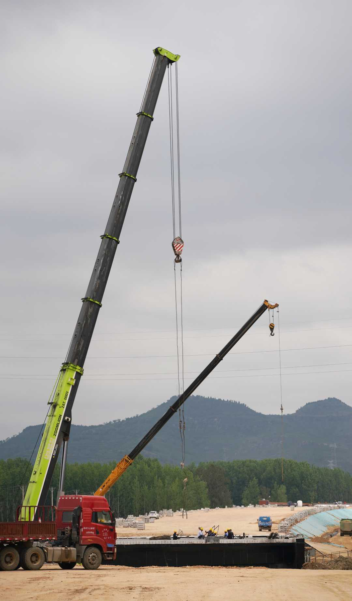 初夏时节,山东沾临高速(沾化至临沂)临临段(临淄至临沂)工程建设有序推进,工人们正加紧施工,抢抓项目建设进度,确保工期如期完成。
