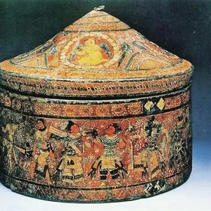 ▲新疆库车苏巴什佛寺遗址出土的7世纪木制舍利盒。(图片来源:新疆维吾尔自治区博物馆)