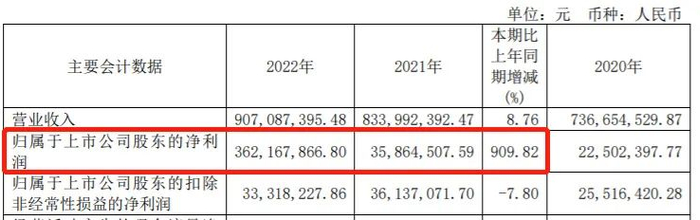 不过,宁波中百的归母净利润,在2022年同比增长909.82%。